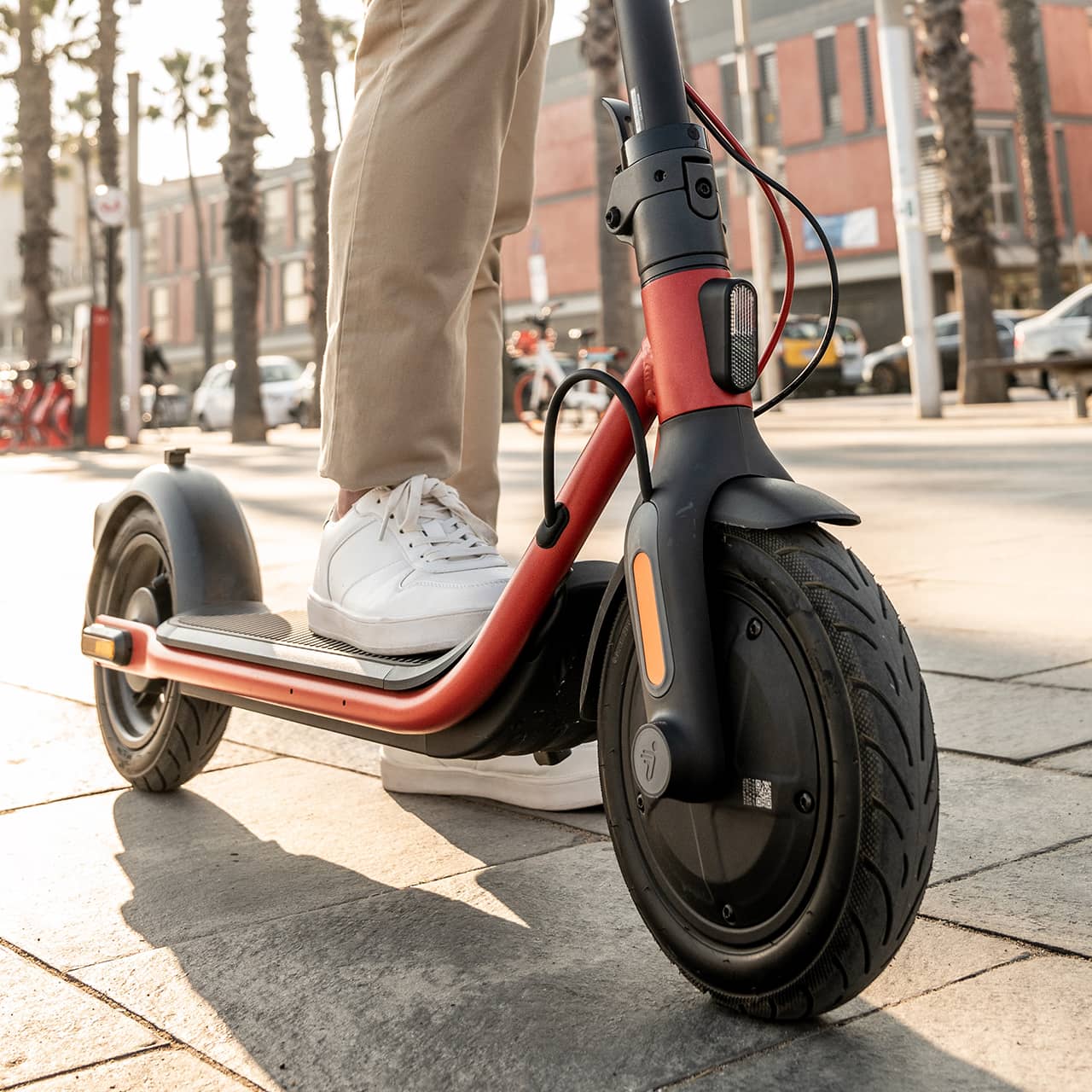 Ninebot KickScooter D38, как и его собратья из D-серии, комплектуется 10-дюймовыми пневматическими шинами с камерами внутри, обеспечивающими комфортное передвижение. Армированные покрышки устойчивы к износу, а запатентованная форма протектора обеспечивает надёжное сцепление с поверхностью.