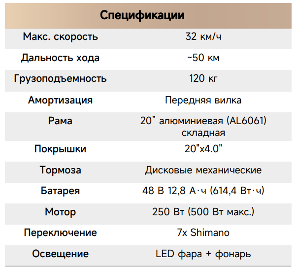• Батарея емкостью 12,8 А·ч обеспечивает впечатляющую автономность — до 50 км пробега на одном заряде.